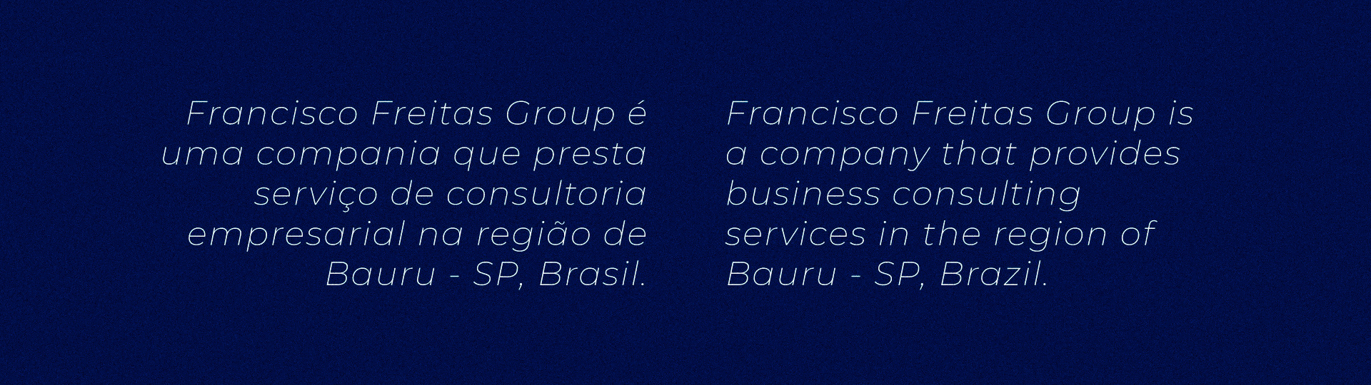 Francisco Freitas Group é uma compania que presta serviço de consultoria empresarial na região de Bauru - SP, Brasil.